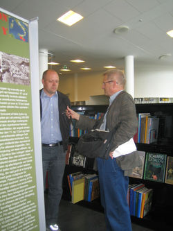 ![]() DVD´ere omhandlende 2.verdenskrig fra Soul Media samt bøger om Eisenhower præsenteres flot på Skjern Bibliotek | ![]() Niels Bjerre igang med opsætningen af udstillingen. Lokale er allerede ved at kigge nærmere på tingene |
