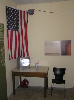 ![]() Udstillingen inde i bunkeren | ![]() Niels Bjerre i udstillingen |