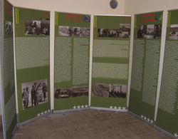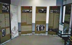 ![]() Niels Bjerre er ved at gøre klar til at sætte udstilingen op | ![]() Udstillingen inde i bunkeren |